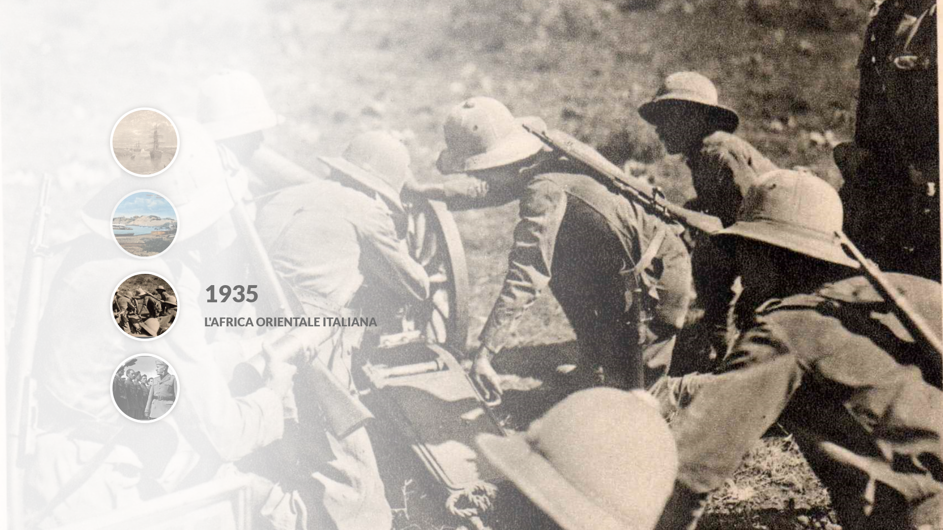Il pretesto per l’inizio della mobilitazione dei soldati è riconducibile all’episodio di Ual Ual del 1934. Così il 3 ottobre gli italiani entrarono in Etiopia senza dichiarazione di guerra, ma con la missione di civilizzarla e garantire all’Italia un posto al sole. Il 5 maggio del 1936 l’esercito fascista riesce ad entrare vittorioso nella capitale, Addis Abeba.